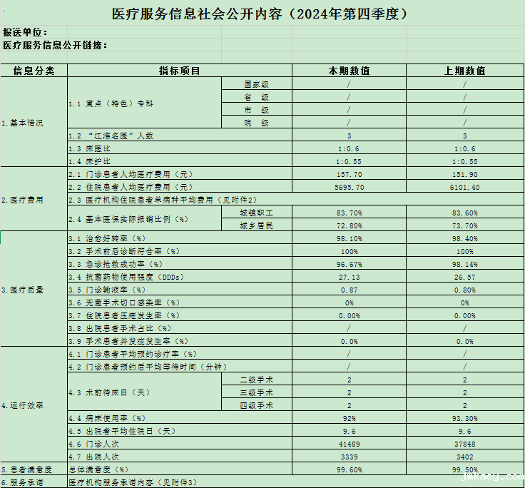 医疗服务信息社会公开内容(2024年第四季度)